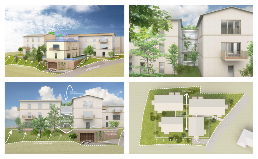Die geplante Bebauung sieht 16 Wohneinheiten mit Tiefgarage vor. Die geplante Gesamtwohnfläche liegt bei ca. 1.095 m².
