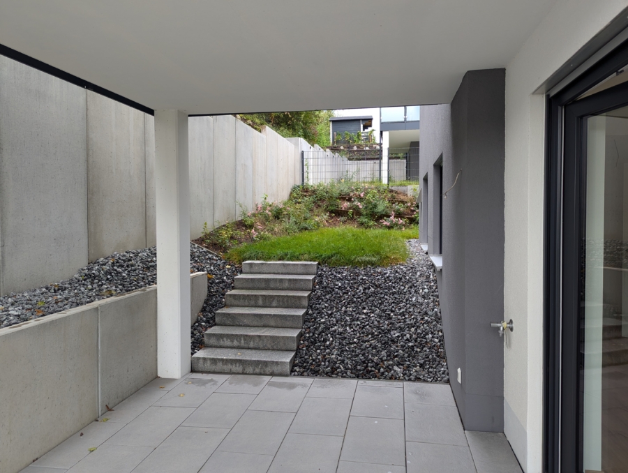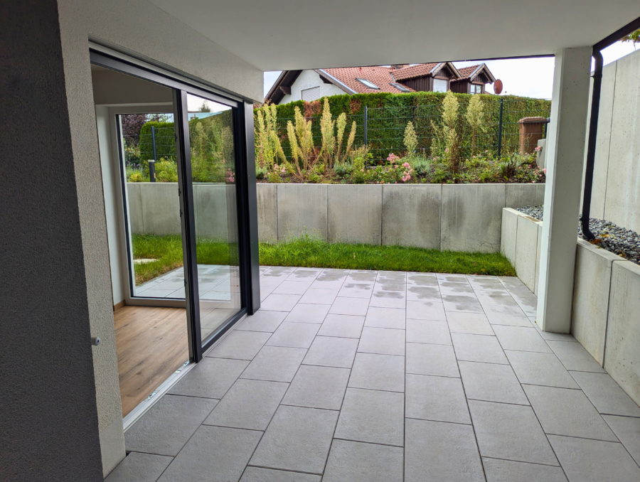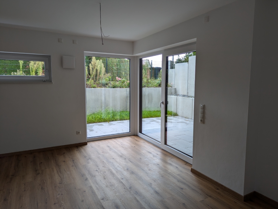 Die ca. 78 m² große 2-Zimmer Erdgeschosswohnung zeichnet sich vor allem durch die große und überdachte Terrasse mit direktem Zugang zum pflegeleichten Garten aus. Des weiteren finden Sie einen großen Wohn/Essbereich mit offener Küche und ein Schlafzimmer vor. Das Bad ist mit einer Badewanne, einer großen Dusche und einem Fenster ausgestattet. Der Kellerraum bietet Ihnen zudem ausreichend Abstellfläche. Im gesamten Wohnbereich ist ein moderner und pflegeleichter Vinylboden in Holzoptik (Eiche) verlegt.