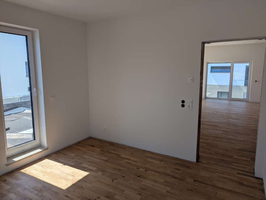 Die Neubau Penthousewohnung befindet sich in sehr zentraler Lage, nur ca. 900 Meter zur Innenstadt und Bahnhof, sowie nur ca. 100 Meter zu Bushaltestelle. Die Wohnung teilt sich auf einen großen Wohn/Essbereich mit integrierter Einbauküche, ein großes Schlafzimmer, ein Kinderzimmer und eine Abstellkammer auf. Das Bad ist mit einer Dusche und einem Fenster ausgestattet. Der ca. 35 m² große Dachterrasse lädt zum Beisammensein mit der Familie und Freunden ein. Sowohl über das Treppenhaus, als auch über den Personenaufzug erreichen Sie Ihre zwei Tiefgaragenstellplätze und Ihren Kellerabteil (mit Steckdose).